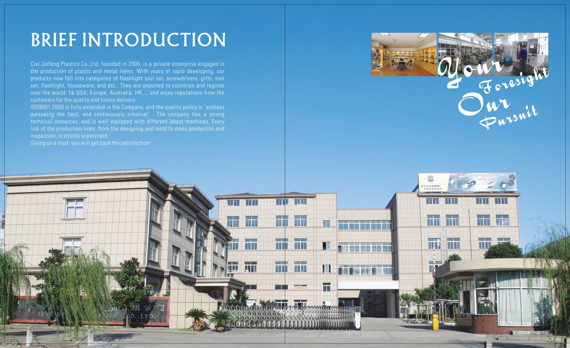 慈溪市金丰塑料制品有限公司业务部是组合工具、组套工具、手电筒、促销礼品、组合螺丝刀等产品专业生产加工的私营有限责任公司,公司总部设在宁波慈溪市桥头工业开发区日旺北路,慈溪市金丰塑料制品有限公司业务部拥有完整、科学的质量管理体系。慈溪市金丰塑料制品有限公司业务部的诚信、实力和产品质量获得业界的认可。欢迎各界朋友莅临慈溪市金丰塑料制品有限公司业务部参观、指导和业务洽谈。